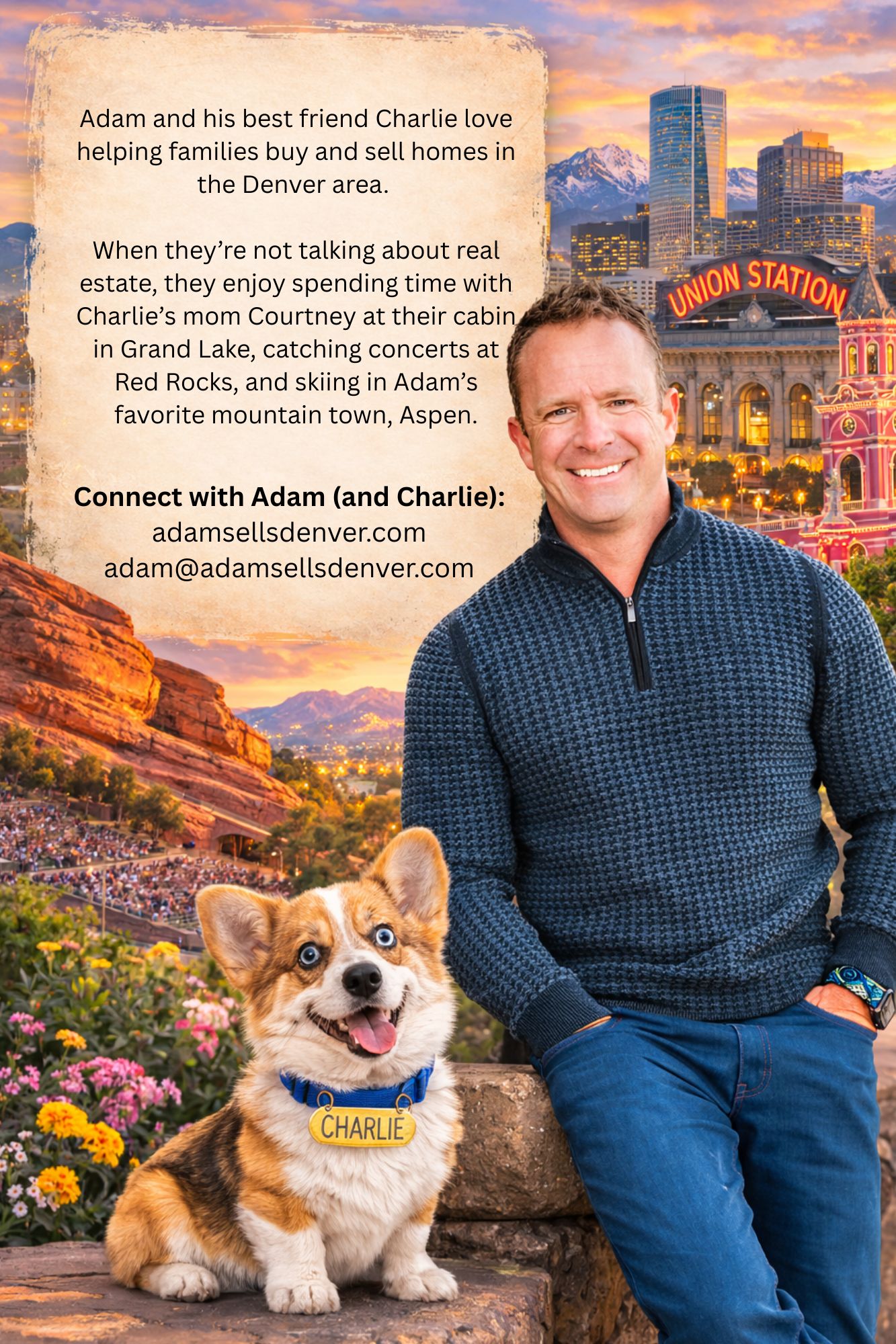 Along the way, his real-life sidekick Charlie the Corgi has become both his best friend and the inspiration behind this story. When they’re not helping families navigate the Denver market, they enjoy spending time with Adam's girlfriend (and Charlie’s mom) Courtney, relaxing at their cabin in Grand Lake, catching live shows at Red Rocks, and skiing in Aspen.